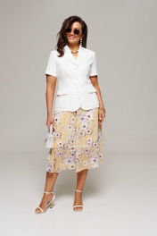 Нарядный летний костюм жакет и платье из шифона Beautiful&Free 6100 молочный+желтый - фото 1