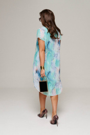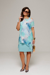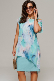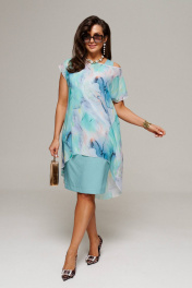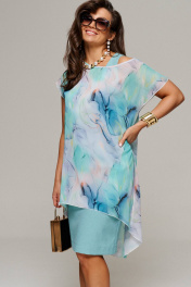 Платье с накидкой из шифона – идеальный вариант для летнего look, праздничного образа. При помощи накидки можно сделать более соблазнительными очертания образа и придать еще большего очарования. При использовании в комплекте с платьем без рукавов – накидка еще и дарит комфортное тепло. Представляем Вашему вниманию женский комплект 2-ка, состоящий из двух элементов: платья и накидки. Платье приталенного силуэта, из смесовой ткани с льняным переплетением (лен «вишер»), без рукавов, на трикотажной подкладке. Передняя часть с двумя нагрудными вертикальными рельефами, переходящими в е выточки на уровне талии. Спинка разрезная по среднему шву, в который вставлена потайная застежка – «молния». В нижней части среднего шва спинки предусмотрен разрез в виде шлицы. Дополнительное приталивание спинки за счет вертикальных рельефов, переходящих в талиевые выточки. Горловина округлой формы. Проймы и горловина изделия обработаны подкладкой. Накидка из шифона, свободного силуэта. Передняя и задняя части цельнокроеные. Горловина широкая, округлой формы. Передняя часть короче задней, с плавным переходом через боковой шов. Длина платья (по среднему шву спинки) – 100см. Длина накидки (по среднему шву спинки) – 101см.