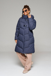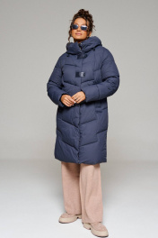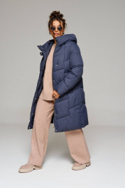 Зимнее стёганое пальто прямого силуэта из плащёвой ткани Beautiful&Free 6244 глубокий_синий