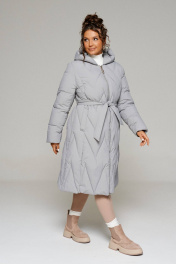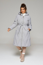 Пальто с рельефами и капюшоном из влагостойкой ткани Beautiful&Free 6246 серый