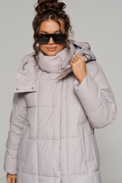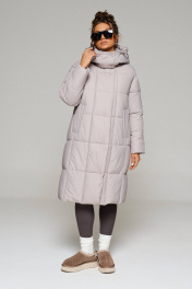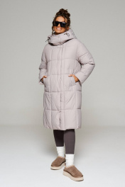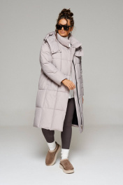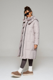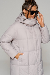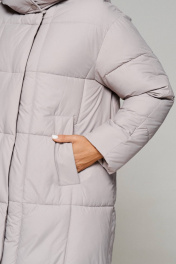 Пальто стеганое прямого силуэта на молнии и кнопках Beautiful&Free 6247 серо-бежевый - фото 10