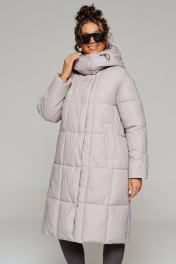 Пальто стеганое прямого силуэта на молнии и кнопках Beautiful&Free 6247 серо-бежевый