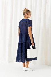 Легкое, струящееся платье из хлопка – идеальный выбор для лета! Универсального фасона, подходящее для любого мероприятия, длинное платье свободного силуэта из хлопка станет любимым в гардеробе! Даже в самый жаркий день вы будете чувствовать уверенно и комфортно. Платье позволяет скрыть особенности фигуры, на которые не хочется акцентировать внимание. В городских буднях, а также на отдыхе просто не обойтись без модели из хлопковой ткани! Платье длинной в пол, на хлопковой подкладке, отрезное по линии талии. Верхняя часть переда цельнокроеная с двумя нагрудными вытачками от бокового шва. Спинка цельнокроеная с двумя вытачками на талии. Низ платья объемный, широкий состоит из трех воланов одинаковой ширины. Рукав короткий, одношовный, втачной. Горловина округлая.