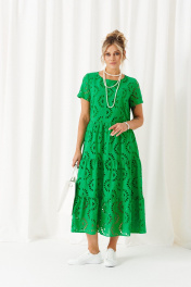 Легкое, струящееся платье из хлопка – идеальный выбор для лета! Универсального фасона, подходящее для любого мероприятия, длинное платье свободного силуэта из хлопка станет любимым в гардеробе! Даже в самый жаркий день вы будете чувствовать уверенно и комфортно. Платье позволяет скрыть особенности фигуры, на которые не хочется акцентировать внимание. В городских буднях, а также на отдыхе просто не обойтись без модели из хлопковой ткани! Платье длинной в пол, на хлопковой подкладке, отрезное по линии талии. Верхняя часть переда цельнокроеная с двумя нагрудными вытачками от бокового шва. Спинка цельнокроеная с двумя вытачками на талии. Низ платья объемный, широкий состоит из трех воланов одинаковой ширины. Рукав короткий, одношовный, втачной. Горловина округлая.