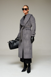 Демисезонное пальто прямого силуэта для тех, кто любит комфорт и лаконичность. Это сочетание стиля, современных материалов и безупречного кроя. Лёгкое, удобное и уютное пальто подходит для любого случая выхода. Пальто выполнено из шерстяной ткани, которая обеспечивает теплоизоляцию и защиту от ветра и влаги, подходит для межсезонья и теплой зимы. Однобортное, на подкладке. Изделие рассчитано на температурный режим от +10 до -5 градусов. Модель прямого силуэта, базового кроя с удлиненной линией плеча; предназначена для повседневного использования. Передняя часть цельнокроеная, с двумя функциональными прорезными карманами с клапаном. Под воротником расположена вытачка. Спинка с центральным швом. Для удобства динамики внизу изделия расположена высокая складка. Рукав длинный, одношовный, рубашечного типа с вытачкой. Снизу рукава расположена пата с фиксацией на кнопке. Застёжка смещенная на две потайные крупные кнопки. Воротник широкий типа «шаль». Низ изделия ровный. Подкладка гладкая. К изделию прилагается пояс-завязка.