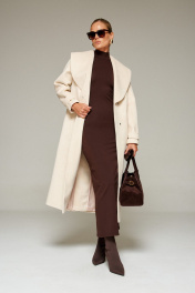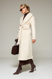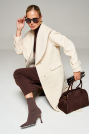 Демисезонное пальто прямого силуэта для тех, кто любит комфорт и лаконичность. Это сочетание стиля, современных материалов и безупречного кроя. Лёгкое, удобное и уютное пальто подходит для любого случая выхода. Пальто выполнено из шерстяной ткани, которая обеспечивает теплоизоляцию и защиту от ветра и влаги, подходит для межсезонья и теплой зимы. Однобортное, на подкладке. Изделие рассчитано на температурный режим от +10 до -5 градусов. Модель прямого силуэта, базового кроя с удлиненной линией плеча; предназначена для повседневного использования. Передняя часть цельнокроеная, с двумя функциональными прорезными карманами с клапаном. Под воротником расположена вытачка. Спинка с центральным швом. Для удобства динамики внизу изделия расположена высокая складка. Рукав длинный, одношовный, рубашечного типа с вытачкой. Снизу рукава расположена пата с фиксацией на кнопке. Застёжка смещенная на две потайные крупные кнопки. Воротник широкий типа «шаль». Низ изделия ровный. Подкладка гладкая. К изделию прилагается пояс-завязка.