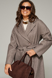 Демисезонное пальто прямого силуэта для тех, кто любит комфорт и лаконичность. Это сочетание стиля, современных материалов и безупречного кроя. Лёгкое, удобное и уютное пальто подходит для любого случая выхода. Пальто выполнено из шерстяной ткани, которая обеспечивает теплоизоляцию и защиту от ветра и влаги, подходит для межсезонья и теплой зимы. Двубортное, на подкладке. Изделие рассчитано на температурный режим от +10 до -5 градусов. Модель прямого силуэта, с цельнокроеным покроем рукава; предназначена для повседневного использования. Передняя часть с двумя прорезными карманами с широкой листочкой и с нагрудной вытачкой от горловины. Спинка с центральным швом. Для удобства динамики внизу изделия расположена высокая шлица. Рукав длинный, тип «цельнокроеный» с ластовицей, переходящей в нижнюю часть рукава. Застёжка смещенная на одну видимую петлю с декоративной пуговицей и на три потайные петли с пуговицами. Воротник классический пиджачного типа с лацканами. Низ изделия ровный. Подкладка гладкая. К изделию прилагается пояс-завязка. Длина (по среднему шву спинки) = 124 см. (+1см.) Длина рукава (+плечо) = 74 см. (+1см.)