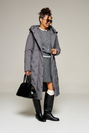 Зимнее, стеганое полупальто прямого силуэта для ценителей стиля и практичности. Это отличное сочетание современных материалов и точного кроя. Лёгкое, удобное и классическое пальто подходит для холодных дней, обеспечивая тепло и комфорт в холодную погоду. Идеально сочетает в себе сдержанность и расслабленность, универсальность и гармоничность. Пальто выполнено из прочной, влагостойкой и приятной на ощупь полиэстерной ткани; на синтетической подкладке. Утеплитель холлофайбер 250 г/м. кв. предназначен для использования изделия при температурном режиме от -10 до -25 градусов. Модель прямого силуэта, базового кроя; предназначена для повседневной носки. Перед с центральной вертикальной вставкой, переходящей в капюшон, а также с фигурным подрезом на уровне талии и с симметричными боковыми карманами от него, фиксируемые на кнопку. Выше подреза расположены функциональные вертикальные карманы на молнии с декоративным металлическим бегунком. Спинка с кокеткой и с боковыми рельефами от неё. Рукав длинный втачной двухшовный. По низу внутри рукава предусмотрена дополнительная вставка в виде притачной трикотажной манжеты. Капюшон умеренного объема. По периметру капюшона с внешней стороны вставлен шнур в цвет изделия с декоративными фиксаторами и наконечниками. Застежка смещенная на двустороннюю молнию от верха до низа и кнопки. Низ изделия ровный. Для удобства движения внизу в боковых швах предусмотрены небольшие разрезы. Подкладка гладкая с наличием внутреннего кармана слева.