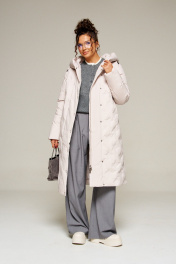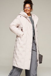 Зимнее, стеганое полупальто прямого силуэта для ценителей стиля и практичности. Это отличное сочетание современных материалов и точного кроя. Лёгкое, удобное и классическое пальто подходит для холодных дней, обеспечивая тепло и комфорт в холодную погоду. Идеально сочетает в себе сдержанность и расслабленность, универсальность и гармоничность. Пальто выполнено из прочной, влагостойкой и приятной на ощупь полиэстерной ткани; на синтетической подкладке. Утеплитель холлофайбер 250 г/м. кв. предназначен для использования изделия при температурном режиме от -10 до -25 градусов. Модель прямого силуэта, базового кроя; предназначена для повседневной носки. Перед с центральной вертикальной вставкой, переходящей в капюшон, а также с фигурным подрезом на уровне талии и с симметричными боковыми карманами от него, фиксируемые на кнопку. Выше подреза расположены функциональные вертикальные карманы на молнии с декоративным металлическим бегунком. Спинка с кокеткой и с боковыми рельефами от неё. Рукав длинный втачной двухшовный. По низу внутри рукава предусмотрена дополнительная вставка в виде притачной трикотажной манжеты. Капюшон умеренного объема. По периметру капюшона с внешней стороны вставлен шнур в цвет изделия с декоративными фиксаторами и наконечниками. Застежка смещенная на двустороннюю молнию от верха до низа и кнопки. Низ изделия ровный. Для удобства движения внизу в боковых швах предусмотрены небольшие разрезы. Подкладка гладкая с наличием внутреннего кармана слева.