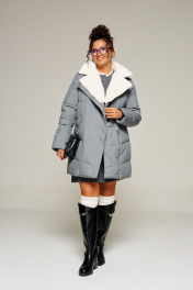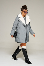 Зимнее, стеганое пальто прямого силуэта для ценителей стиля и практичности. Это отличное сочетание современных материалов и точного кроя. Лёгкое, удобное и классическое пальто подходит для холодных дней, обеспечивая тепло и комфорт в холодную погоду. Идеально сочетает в себе сдержанность и расслабленность, универсальность и гармоничность. Пальто выполнено из прочной, влагостойкой и приятной на ощупь полиэстерной ткани; на синтетической подкладке. Утеплитель холлофайбер 250 г/м. кв. предназначен для использования изделия при температурном режиме от -10 до -25 градусов. Модель прямого силуэта, базового кроя; предназначена для повседневной носки. Перед с симметричными боковыми прорезными карманами с клапаном, фиксируемые на кнопку. Слева на клапане расположен отделочный элемент. Спинка цельнокроеная. Рукав длинный втачной двухшовный. По низу внутри рукава предусмотрена дополнительная вставка в виде притачной трикотажной манжеты. Воротник пиджачного типа с возможностью застегивания до верха. Внутренняя часть воротника и лацканы обработаны искусственным мехом. Капюшон съемный (на молнии) умеренного объема. По периметру капюшона протянут шнур в цвет изделия с декоративными металлическими фиксаторами. Застежка смещенная на двустороннюю молнию от верха до низа под ветрозащитной планкой и кнопки по краю борта. Низ изделия ровный. Подкладка гладкая с наличием внутреннего кармана слева.