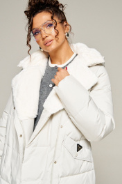 Зимнее, стеганое пальто прямого силуэта для ценителей стиля и практичности. Это отличное сочетание современных материалов и точного кроя. Лёгкое, удобное и классическое пальто подходит для холодных дней, обеспечивая тепло и комфорт в холодную погоду. Идеально сочетает в себе сдержанность и расслабленность, универсальность и гармоничность. Пальто выполнено из прочной, влагостойкой и приятной на ощупь полиэстерной ткани; на синтетической подкладке. Утеплитель холлофайбер 250 г/м. кв. предназначен для использования изделия при температурном режиме от -10 до -25 градусов. Модель прямого силуэта, базового кроя; предназначена для повседневной носки. Перед с симметричными боковыми прорезными карманами с клапаном, фиксируемые на кнопку. Слева на клапане расположен отделочный элемент. Спинка цельнокроеная. Рукав длинный втачной двухшовный. По низу внутри рукава предусмотрена дополнительная вставка в виде притачной трикотажной манжеты. Воротник пиджачного типа с возможностью застегивания до верха. Внутренняя часть воротника и лацканы обработаны искусственным мехом. Капюшон съемный (на молнии) умеренного объема. По периметру капюшона протянут шнур в цвет изделия с декоративными металлическими фиксаторами. Застежка смещенная на двустороннюю молнию от верха до низа под ветрозащитной планкой и кнопки по краю борта. Низ изделия ровный. Подкладка гладкая с наличием внутреннего кармана слева.