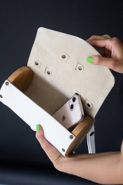 Кожаная сумка через плечо из натуральной кожи и дерева, 22х11х11 см Because TUB BEL