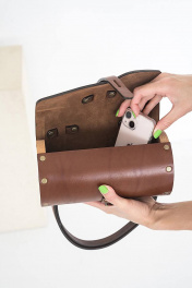 Сумка женская через плечо из натуральной кожи и вставками из натурального дерева изготовлена вручную. Простые формы и минимум декора. Качественная и плотная натуральная кожа делает наши сумки тактильно приятными, дорогими и стильными. Ремешок из натуральной кожи регулируется от длинного 115 см до короткого 65 см, за счет перестёгивания кнопок. Закрывается сумка на кобурную кнопку цвета античной латуни, что в совокупности с натуральными материалами придает ей оригинальный внешний вид и подчеркивает неординарный вкус обладателя данного аксессуара. В каждой нашей сумке используется только натуральное дерево Бук и натуральная кожа. Кожа и дерево надежно закреплены с помощью металлических заклепок. Внутри сумки одно большое отделение. Универсальная кожаная сумка ТУБУС Because через плечо будет идеально сочетаться с любой формой одежды и станет прекрасным подарком для любимой мамы, подруги или подростка на день рождения. BECAUSE BAGS для тех, кто ценит стиль и качество! Размер 22*11*11