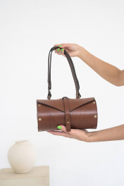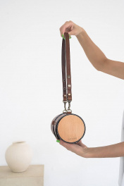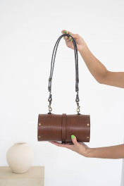 Кожаная сумка через плечо из натуральной кожи и дерева, 22х11х11 см Because TUB BROWN