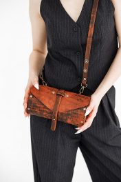 Сумка женская TUB-VINTAGE TERRACOT через плечо из натуральной кожи - это удобный и стильный аксессуар с ремешком из натуральной кожи изготовлена вручную. Сумки женские через плечо Because можно носить как кросс-боди , так и на плечо. В каждой нашей сумке используется только натуральное дерево Бук, что позволяет маленькой женской сумочке быть не только легкой но и вместительной. В женскую сумочку войдут самые необходимые вещи, телефон больших размеров, паспорт, очки, расческа, ключи и многое другое при этом ваши руки будут свободны. Простые формы и минимум декора. Качественная и натуральная кожа делает наши сумки тактильно приятными, дорогими и стильными. Ремешок из натуральной кожи регулируется от длинного 115 см до короткого 65 см, за счет перестегивания кнопок. Закрывается сумка на кобурную кнопку цвета античной латуни, что в совокупности с натуральными материалами придает ей оригинальный внешний вид и подчеркивает неординарный вкус обладателя данного аксессуара. Кожа и дерево надежно закреплены с помощью металлических заклепок. Этот аксессуар будет весьма уместно вручить в качестве оригинального подарка себе любимой или на любое торжество. Наша сумка подойдет под любые образы и мероприятия. Сумка выполнена по индивидуальным эскизам, с использованием качественных материалов, устойчивых к перепадам температур и механическим воздействиям. Высокое качество дерева и кожи и надежная фурнитура позволит не волноваться за внешний вид и дальнейшую эксплуатацию наших сумок. Внутри сумки одно большое отделение. Сумка Because тубус идеально подходит на лето а так же как отличный аксессуар под вечернее платье. Универсальная кожаная сумка через плечо будет идеально сочетаться с любой формой одежды и станет прекрасным подарком для любимой мамы, подруги или подростка на день рождения. Также в коллекции есть более яркие модели. Каждый экземпляр ручной работы выполнен с любовью к женщинам и их нуждам. Эта красивая и удобная сумка станет отличным выбором для каждого дня и в любой ситуации. Лаконичная и стильная маленькая сумочка выполнена из качественной кожи, которая хорошо держит форму. В данной коллекции вы найдете маленькие и вместительные сумки, которые станут отличным выбором как для повседневного образа, так и в качестве вечернего клатча. Они также подходят для путешествий и учебы, офисной работы или прогулок с друзьями. Сумки через плечо снабжены ремнем, что позволяет носить их на руке или через плечо. BECAUSE BAGS для тех, кто ценит стиль и качество!