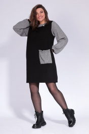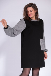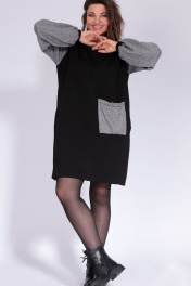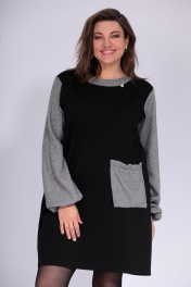 Демисезонное платье из вискозы и трикотажа BegiModa 1019 чёрно-серый