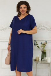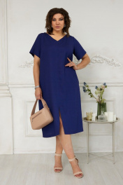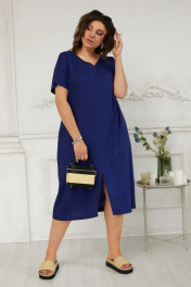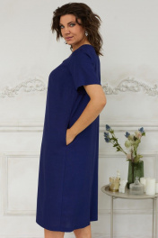 Платье с V-образным вырезом и карманами из льняной ткани BegiModa 1023 индиго