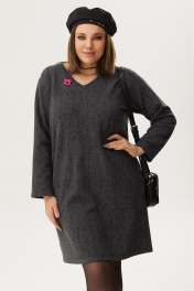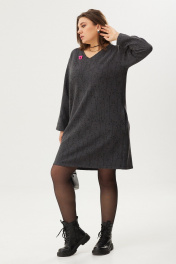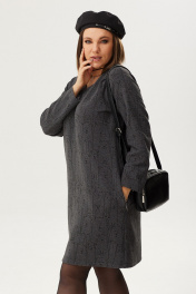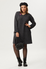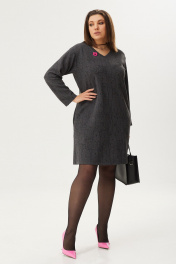 Платье А-силуэта с карманами и контрастной брошью BegiModa 1028 графит