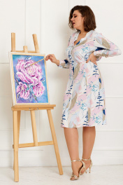 Шикарное женственное платье полуприлегающего силуэта, без подкладки. Выполнено из лёгкой, струящейся ткани с флористической расцветки, подчеркнёт женственность и добавит нотку романтики в Ваш образ. Оно прекрасно сочетается как с изящной, так и спортивной обувью. V-образный вырез удлиняет линию шеи и формирует красивое декольте. Передняя часть платья на притачной планке, имеющей застёжку на петли-пуговицы. Передняя и задняя часть платья присборена, что визуально моделирует фигуру, делая акцент на талии и удлиняет линию ноги. Рукав втачной, полной длины с манжетой и функциональными пуговицами. Низ обработан классическим способом - узкой подгибкой. Платье дополнено не широким поясом из основной ткани. Такая модель - отличный выбор для мероприятий различного формата, как повседневного, так и праздничного. Размерный ряд: 48; 50; 52; 54; 56; 58; 60; 62; Рост: 170 см Замеры в готовом изделии: Длина по спинке: 107 см Длина рукава от горловины: 72 см Обхват груди: 110см/48р; 114см/50р; 118см/52р; 122см/54р; 126см/56р; 130см/58р; 134см/60р; 138см/62р. Обхват бёдер: 110см/48р; 114см/50р; 118см/52р; 122см/54р; 126см/56р; 130см/58р; 134см/60р; 138см/62р. Рост фотомодели 174 см, размер одежды на фото 52.