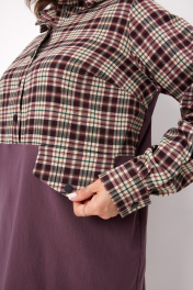 Предлагаем Вам идеальный вариант повседневного платья в трендовой расцветке в клетку. Комбинирование различных по фактуре и цвету материалов позволяет моделировать силуэт, подчёркивая достоинства фигуры и скрывая недостатки. Платье свободного силуэта с отложным воротником со стойкой. Передняя часть платья на притачной планке с застёжкой на кнопки с настрочными клапанами, с нагрудными вытачками. Рукав втачной с манжетой, застёгивающейся на кнопку. Спинка на контрастной кокетке со встречной складкой. Низ изделия обработан в подгибку. Предлагаем дополнить образ сумочкой, любимыми кедами, лоферами либо ботинками, и стильный, привлекающий внимание лук готов! Для того, чтобы правильно подобрать свой размер, необходимо ваш замер объёма груди разделить на 2. (например, объём груди 104:2=52 размер). Замеры в готовом изделии: Длина по спинке от плеча: 94 см Длина рукава от плеча: 66 см Обхват груди: 116см/48р; 120см/50р; 124см/52р; 128см/54р; 132см/56р; 136см/58р; 140см/60р; 144см/62р; Рост фотомодели 174 см, размер одежды на фото 52.