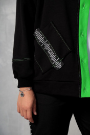 Бомбер свободного кроя, в стиле Оверсайз. Выполнен из двух видов ткани, плотного трикотажа и джинса. Современная модель, притягивающая к себе интерес. Легко сочетается и подходит к разнообразным образам. Функцию застёжки передней части, выполняют стильные пуговицы. На спинке, состоящей из нескольких разрезных деталей, имеется декоративная нашивка. Рукав втачной, со спущенной проймой. По переду, снизу притачные объёмные карманы. Для того, чтобы правильно подобрать свой размер, необходимо ваш замер объёма груди разделить на 2. (например, объём груди 104:2=52 размер). Замеры в готовом изделии: Длина по центру спинки: 72 см Длина рукава от горловины: 71 см Обхват груди: 122см/48р; 126см/50р; 130см/52р; 134см/54р; 138см/56р; 142см/58р; 146см/60р; 150см/62р. Рост фотомодели 174 см, размер одежды на фото 52.