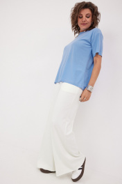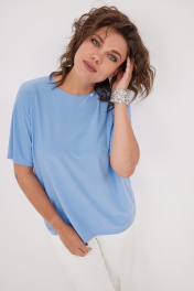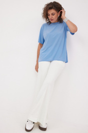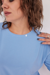 Нежная, невероятно удобная блуза полуприлегающего силуэта выполнена из лёгкой, приятной к телу трикотажной ткани. Легкая и приятная к телу, она идеально подойдет для теплых дней. Пастельный небесный оттенок освежает образ, а короткий рукав дарит свободу движений. Эта блуза станет прекрасным дополнением к вашему летнему гардеробу. Сочетайте ее с джинсами, юбками или шортами для создания стильных и непринужденных образов. Горловина полукруглой формы обработана необычным способом, с помощью притачной обтачки с открытым срезом, декорирована пуговицей контрастного цвета. Рукав втачной обработан подгибкой. Спинка длиннее полочки и имеет форму полукруга по низу. Размерный ряд: 48; 50; 52; 54; 56; 58; 60; 62; Рост: 170 см Для того, чтобы правильно подобрать свой размер, необходимо ваш замер объёма груди разделить на 2. (например, объём груди 104:2=52 размер). Замеры в готовом изделии: Блуза: Длина по спинке от плеча: 69см Длина рукава от горловины: 35см Обхват груди: 106см/48р; 110см/50р; 114см/52р; 118см/54р; 122см/56р; 126см/58р; 130см/60р; 134см/62р. Рост фотомодели 174 см, размер одежды на фото 52. Допуск расхождения в замерах +-2 см.