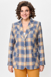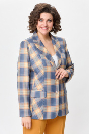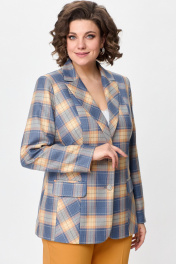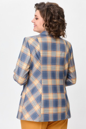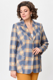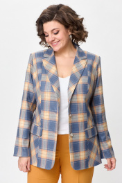 Жакет женский удлиненный, из текстильной ткани, полуприлегающего силуэта с центральной бортовой застежкой на пуговицы до линии перегиба лацкана. Спереди рельефные швы от плечевого шва, отрезной бочок и карман с клапаном. Спинка с рельефами от плечевого шва. Рукав втачной, двухшовный. Воротник пиджачного типа. Жакет на подкладке, длина по спинке 67 см, длина рукава 62 см.