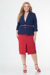 Жакет женский укороченный, полуприлегающего силуэта с центральной бортовой застежкой на петли-пуговицы до линии перегиба лацкана. Спереди рельефные швы от плечевого шва, отрезной бочок и прорезной карман с клапаном. Спинка со средним швом и рельефами от плечевого шва. Рукав втачной, двухшовный, в локтевом шве по низу небольшой разрез. Воротник пиджачного типа. Жакет по передней части на х/б подкладке. Длина по спинке 60 см, длина рукава 53 см. Пояс не прилагается. в 44 в жакете ширина по груди 46, по талии 44, по бедрам 50, в 46 в жакете ширина по груди 48, по талии 46, по бедрам 52, в 48 в жакете ширина по груди 50, по талии 48, по бедрам 54, в 50 в жакете ширина по груди 52, по талии 50, по бедрам 56, в 52 в жакете ширина по груди 54, по талии 52, по бедрам 58, в 54 в жакете ширина по груди 56, по талии 54, по бедрам 60, в 56 в жакете ширина по груди 58, по талии 56, по бедрам 62, в 58 в жакете ширина по груди 60, по талии 58, по бедрам 64, в 60 в жакете ширина по груди 62, по талии 60, по бедрам 66, в 62 в жакете ширина по груди 64, по талии 62, по бедрам 68.