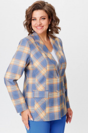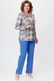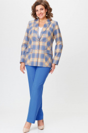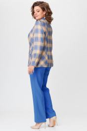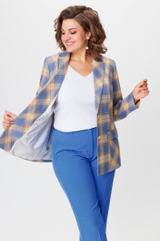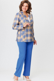 Комплект жакет и брюки из текстиля голубой с принтом БелЭльСтиль 412-3 03 22+596-2 79 22 голубая_клетка+василек