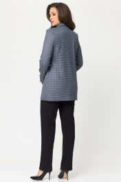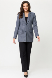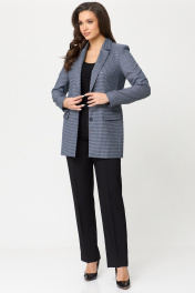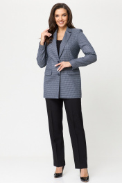 Демисезонный комплект жакет и брюки из текстиля БелЭльСтиль 762-2 84 22+596-2 79 22 синяя_мелкая_клетка+черный