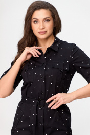 Платье сафари с карманами и поясом, в стиле демисезон БелЭльСтиль 833-29822 чернильный горох - фото 6