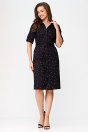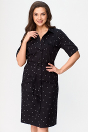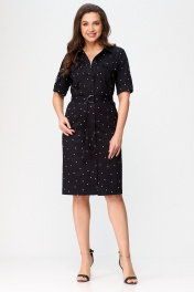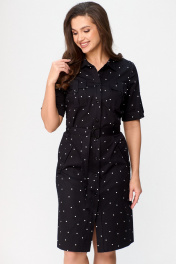 Платье сафари с карманами и поясом, в стиле демисезон БелЭльСтиль 833-29822 чернильный горох - фото 1