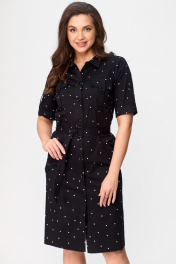 Платье сафари с карманами и поясом, в стиле демисезон БелЭльСтиль 833-29822 чернильный горох