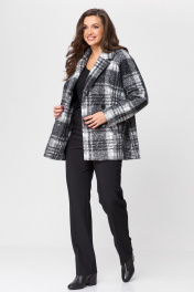 Стильное женское пальто оверсайз свободного силуэта из пальтовой ткани БелЭльСтиль 857-2 97 22 черно-серая клетка