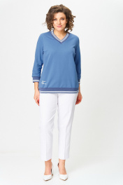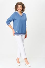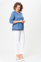 Блуза женская, свободный силуэт, ткань трикотаж. Перед и спинка цельная, вырез V-образный, рукав 3/4,по низу рукавов и низу блузки притачные планки. По спинке длина 67 см, длина рукава 49 см.