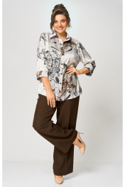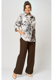 Блуза, брюки БелЭльСтиль 877-3_26_22+601-2_88_22 бежево-коричневый