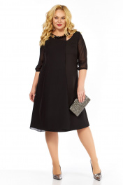 Платье женское А-образного силуэта. Застежка молния по спинке.Полочка сложного кроя с фигурной горловиной и отрезной декоративной ее частью . Рукав и верхняя часть полочки из шифона .