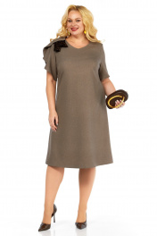 Платье женское А-образного силуэта. Застежка молния по спинке.Один рукав втачной до линии локтя , другой сложного кроя с бантом .