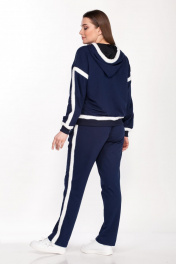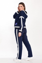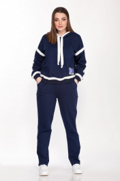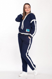 Комплект женский двухпредметный состоит из худи и брюк выполнен из плотной трикотажной ткани в спортивном стиле. Капюшон, срез притачивания рукава, манжет, низ худи украшен пушистой тесьмой. Низ и рукава с притачным довязом. Перед украшен настрочной аппликацией. Брюки на резинке с карманами, боковой срез украшен пушистой тесьмой. Длина худи по спинке 62 см, длина брюк 103 см.