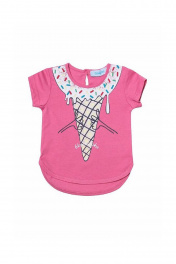 Фуфайка для девочки выполнена из трикотажного полотна кулирная гладь. Детали: полочка изделия украшена водной печатью, удлиненная спинка.