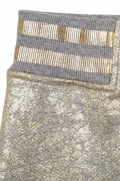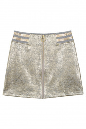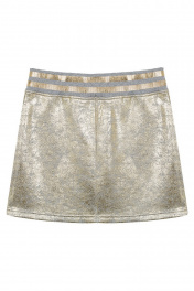 Стильная девочка непременно оценит оригинальный дизайн юбки-трапеции. Трендовая расцветка с эффектом металлик и комфортный эластичный пояс, декорированный золотистыми полосками в спортивном стиле, создают актуальный и непринуждённый образ