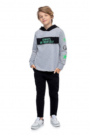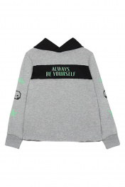 Джемпер для мальчика прямого силуэта в спортивном стиле с капюшоном дополнена контрастной полосой на груди с надписью и стильным принтом на рукавах. Трикотажная ткань футер обеспечивает комфорт в носке и гарантирует приятные тактильные ощущения.