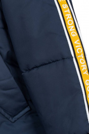 Куртка для мальчика на синтепоне дополнена капюшоном с затяжками и высоким воротником, двумя карманами, вышивкой и манжетами на рукавах. Ткань курточная добби не промокает и не продувается ветром, а подкладка из флиса и нейлона дарит комфорт в носке.