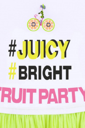 Белое платье для девочки. Дизайнерское оформление в стиле капсулы "Фруктовый микс", вышивка, пайетки. Юбка с воланами.