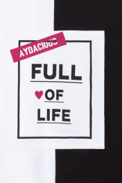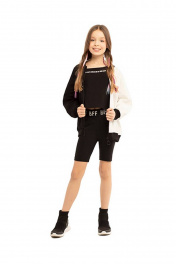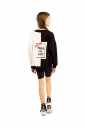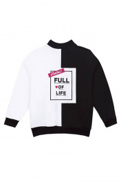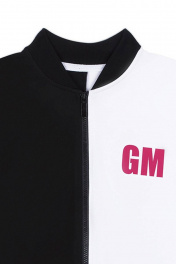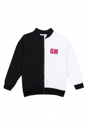 Черно-белый жакет для девочки. Манжеты и резинка из рибаны. Черная молния. Принт-надпись в стилистике капсулы "На своей волне" на лицевой стороне и спинке.