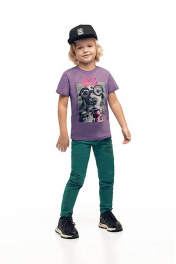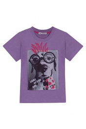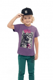 Футболка для мальчика цвета фиолетовый меланж. Прямой силуэт, круглый вырез горловины. Принт в стилистике капсулы "Дружище Бакс".