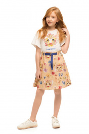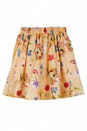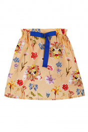 Набивная юбка для девочки трапециевидного силуэта. Эластичная талия. Функциональный затягивающийся ремешок с полукольцами. Оформление в стилистике капсулы "Цветочное сафари".