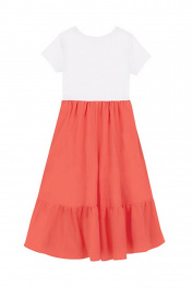 Платье с оборками из хлопка для девочки с коротким рукавом Bell Bimbo 201087 коралл