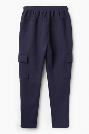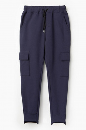 Стильные трикотажные брюки модного силуэта с асимметричным низом и полуманжетами из рибаны. С кокеткой сзади и накладными карманами-клапанами. Комфортная посадка благодаря мягкому поясу с регулировкой на шнур. Вместительные карманы-хулиганы для хранения необходимых мелочей. Брюки комфортны в повседневной носке, отлично впишутся в гардероб мальчика-подростка,