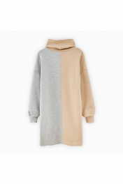 Платье в стиле колор-блок из трикотажа и хлопка Bell Bimbo 222108 бежевый/серый меланж